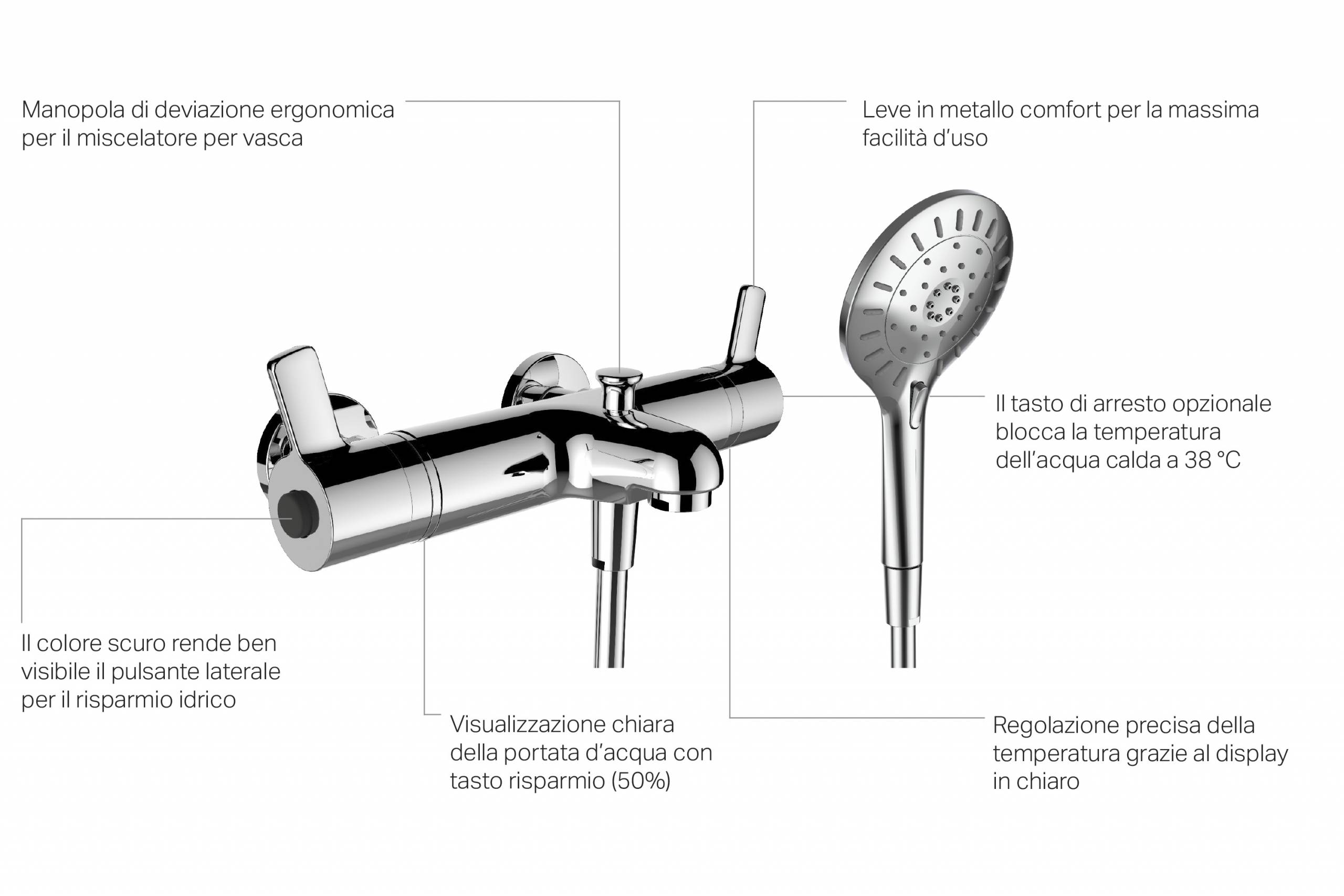 A chi non è mai capitato di lottare con le manopole della doccia o della vasca per trovare la temperatura giusta? Tutto questo è acqua passata, grazie ai nostri miscelatori termostatici regolabili con precisione e in tutta semplicità.