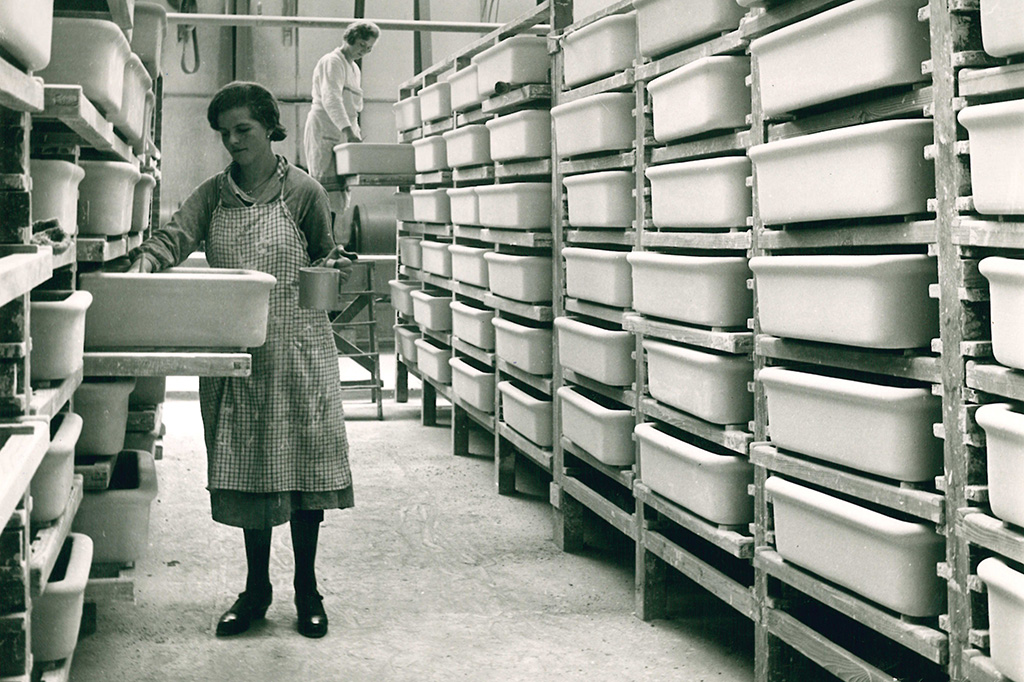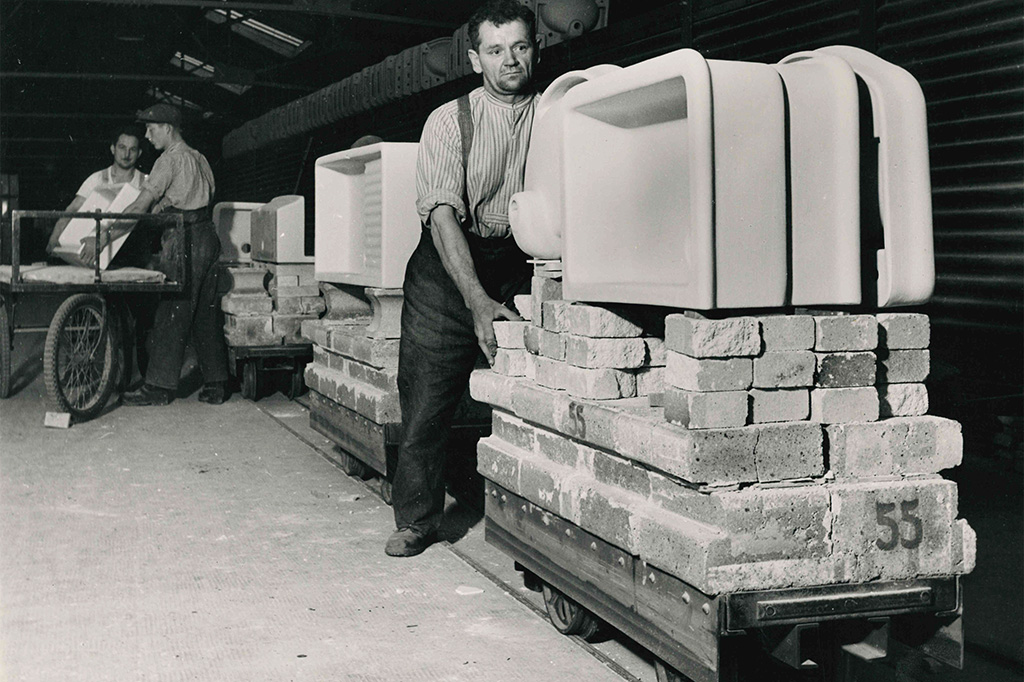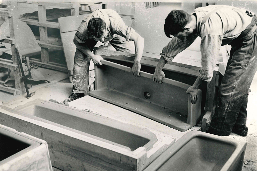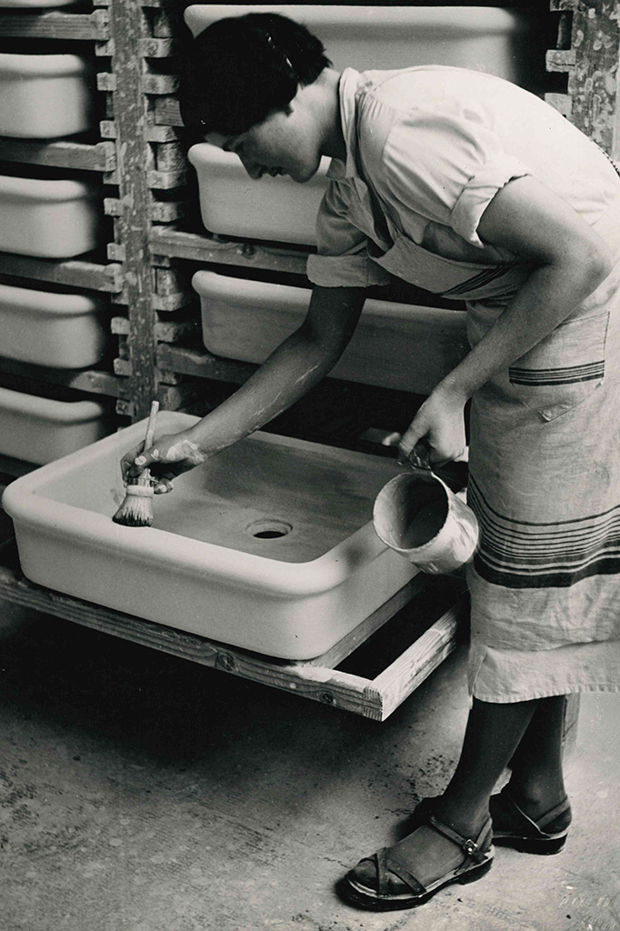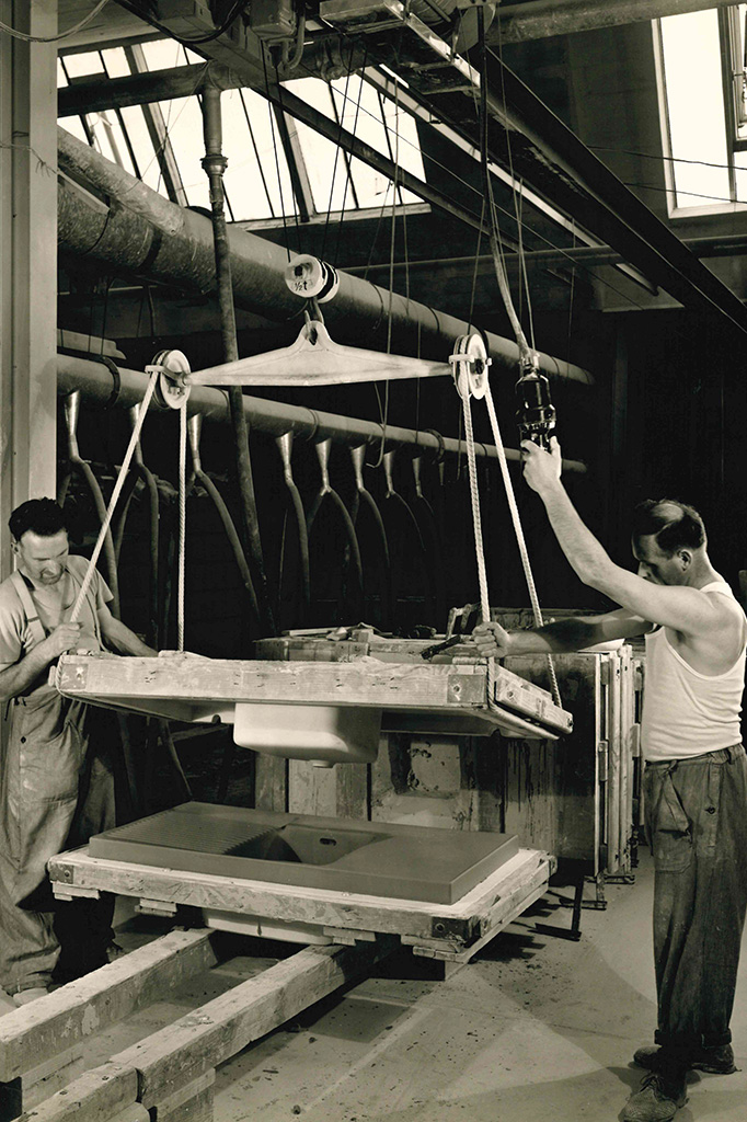 Die ersten keramischen Spültische, sorgfältig in Stroh gepolstert, gingen zwar erst 1925 aus der Produktion in Laufen hervor – mehr als drei Jahrzehnte nach der Gründung des Unternehmens im Jahr 1892 – doch sie markierten den Beginn des Erfolges.