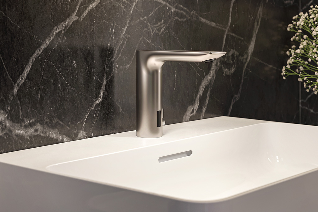 Die Armaturen basieren auf Infrarot-Technologie und werden berührungslos bedient, was für mehr Hygiene und Komfort am Waschplatz sorgt. Nebst der klassischen Ausführung in Chrom sind sie auch mit einer PVD-Beschichtung in inox look erhältlich.