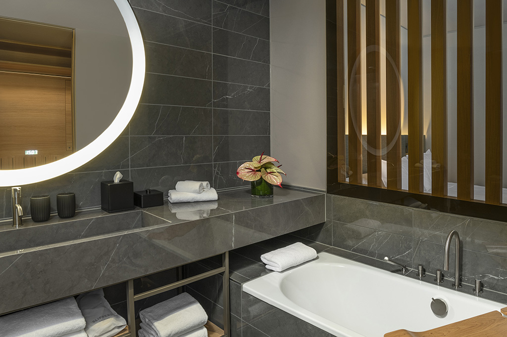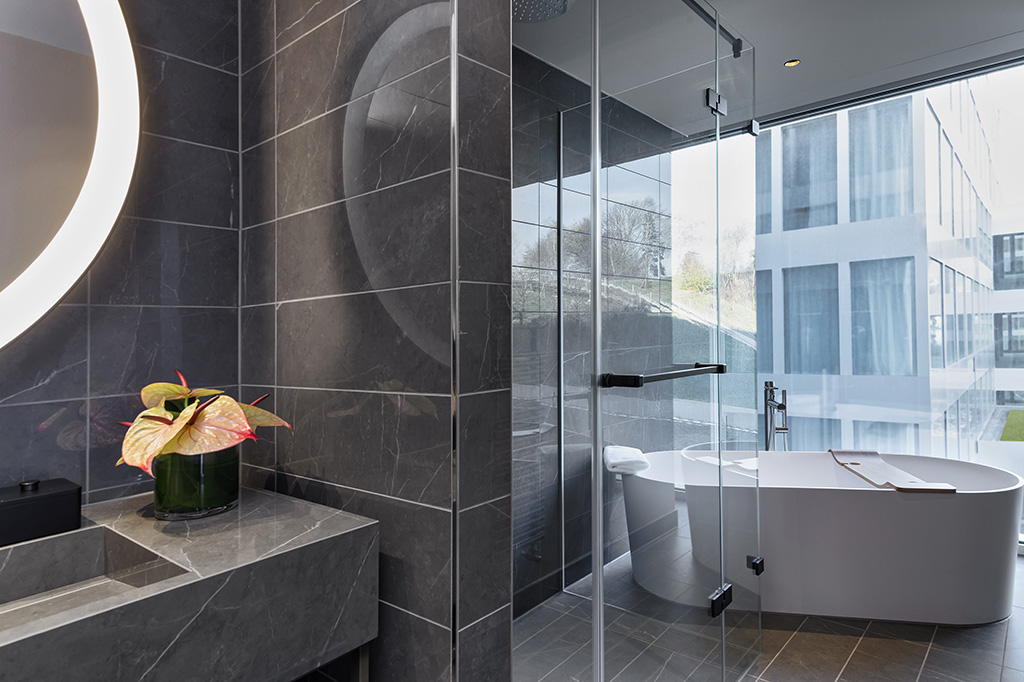 Nebst vielen weiteren Faktoren waren unser international ausgerichtetes Portfolio, die Bereitstellung von individuellen Ausführungen − zum Beispiel in Form der Armaturenbeschriftung gemäss Richtlinien der Hyatt-Gruppe und farbiger Sanitärkeramik für das Hotel Hyatt Regency − sowie die kurze Lieferkette, die einen reibungslosen Einbau garantierte, ausschlaggebend für den Zuschlag.