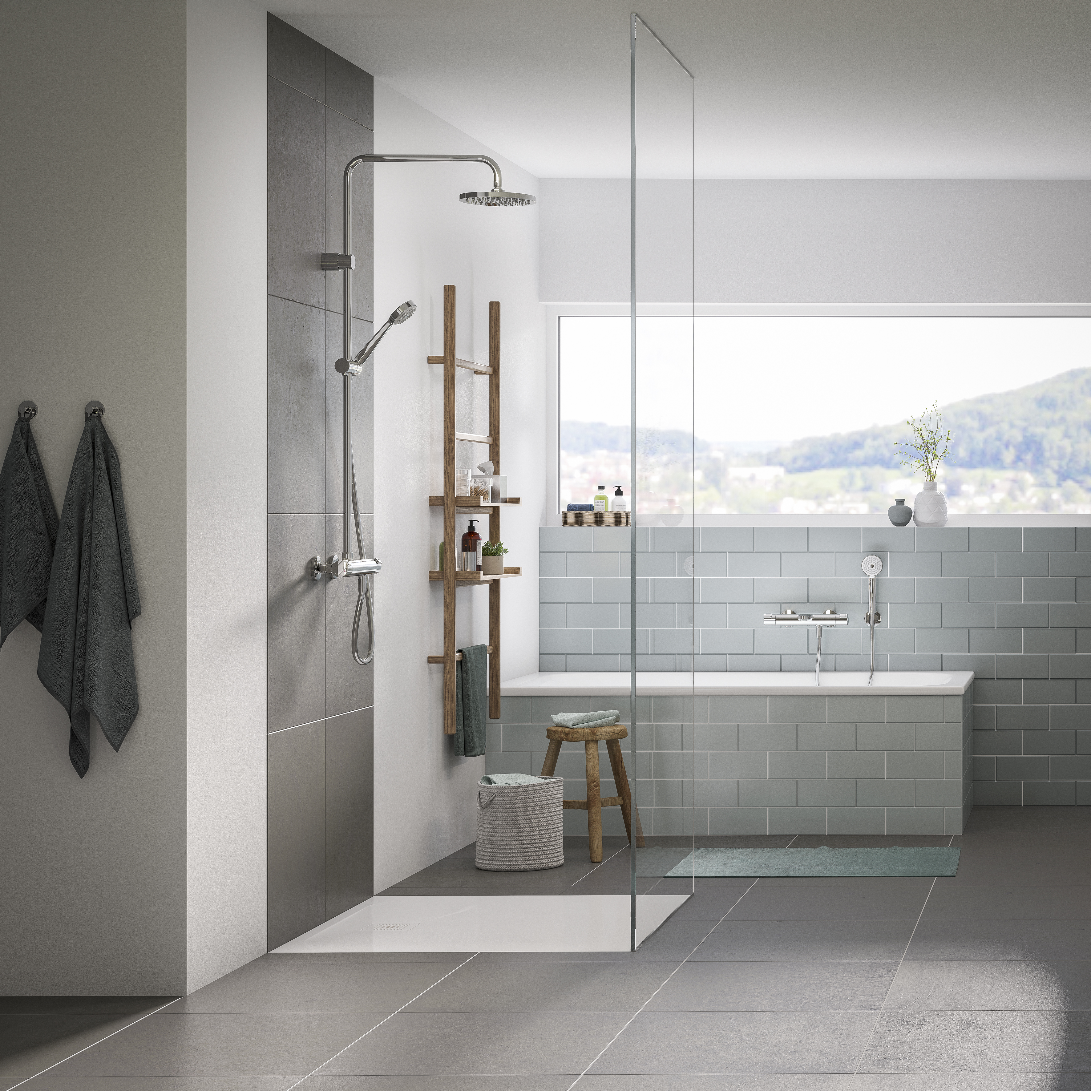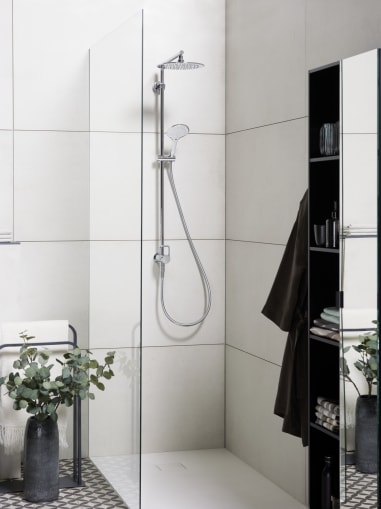 Die Showerstations sind kompakte Einheiten, die sich in kleinen und grossen Badezimmern, privat ebenso wie im Hotel, schnell und unkompliziert montieren lassen – ganz ohne umfangreiche Badsanierung. Dank der 153 mm Anschlussdistanz lassen sich die Armaturen problemlos an alle gängigen Schweizer Standardanschlüsse montieren.